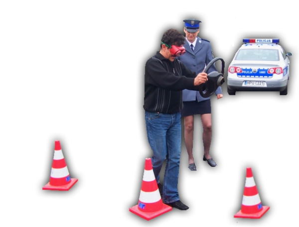 Niezwykłe gogle, w których widzimy świat pod wpływem alkoholu. Proponujemy różne konkurencje m.in. przejście slalomem w okół pachołków z kierownicą, przejażdżka symulatorem bezpiecznej jazdy na specjalnym torze.