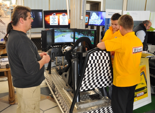 Jest to ruchomy symulator, w którym zainstalowaliśmy program do nauki bezpiecznej jazdy. Proponujemy jazdę po placu manewrowym i ulicy. Aby utrudnić jazdę, możemy założyć alkogogle, w których czujemy się jak pod wpływem alkoholu.