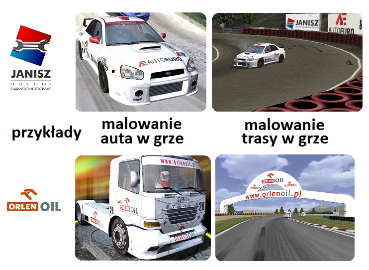- gratisy - malowanie w grze w logo klienta, wystrój rajdowy (2 x beczki, 2 x flagi, podium zwycięzcy)